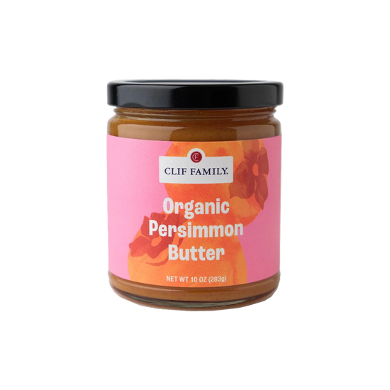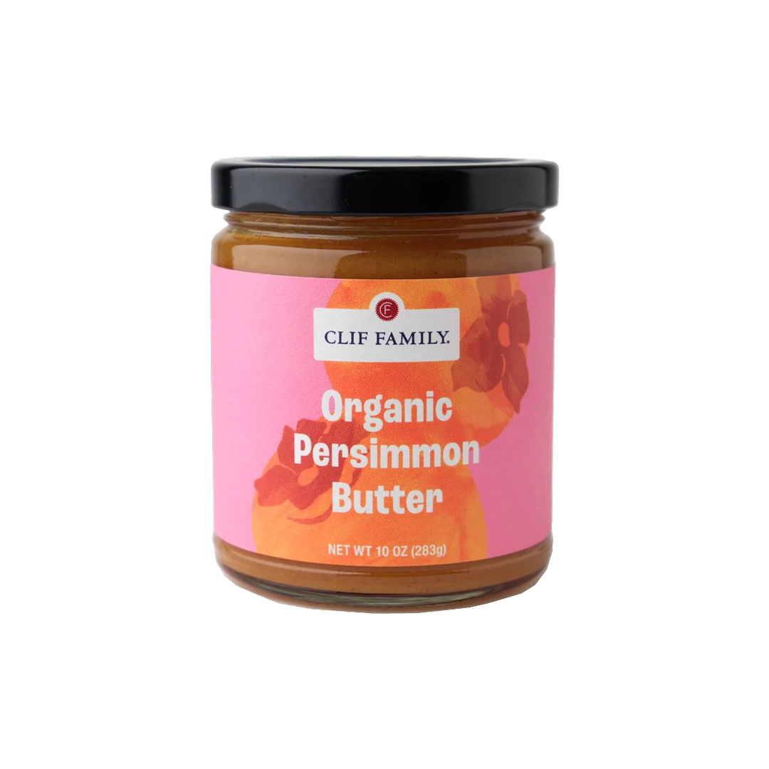 Unique, cozily spiced, and full of autumn flavor, our October featured jam, Organic Persimmon Butter from our friends at Clif Family, is what every fruit butter aspires to be. Pumpkin-hued, farm-fresh Fuyu persimmons are slowly cooked down until soft and blended with touches of Organic sugar, lemon, and warming cinnamon & cloves for a smooth, slightly tart, and simply irresistible spread.