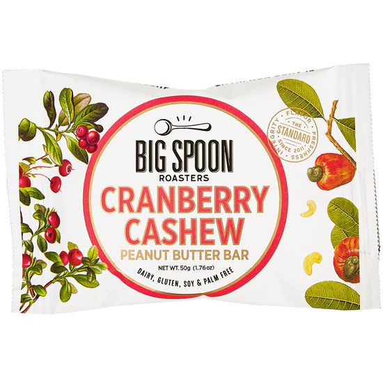 Our Cranberry Cashew Bar blends our fresh-roasted peanut butter with Organic cashews, tart Michigan cranberries, dates, crispy house-baked granola, non-GMO plant-based protein, and raw Organic wildflower honey. With fresh-roasted peanut butter as the main ingredient, these bars are not only delicious, but also packed with plant-based protein, powerful antioxidants, and heart-healthy fiber.