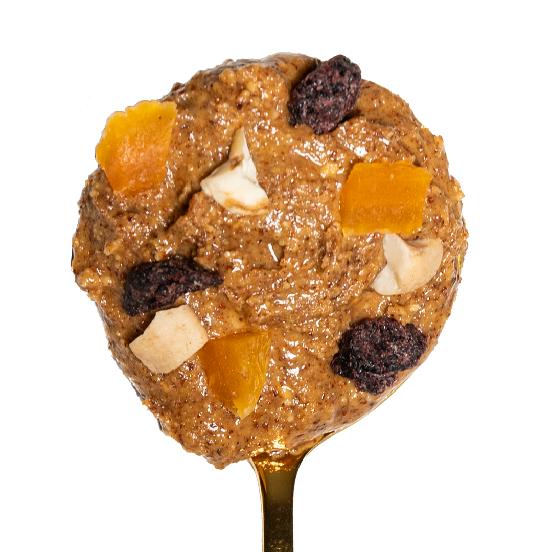 Heirloom Mission almonds meet rich Oregon hazelnuts to create a smooth, indulgent base, sweetened with a touch of Organic maple syrup. Crunchy Organic cashews and dried cranberries & apricots add bursts of vibrant texture and flavor, elevated with the warming spice of Organic cinnamon & cloves, and balance from real Ugandan Bourbon vanilla beans and Jacobsen sea salt.